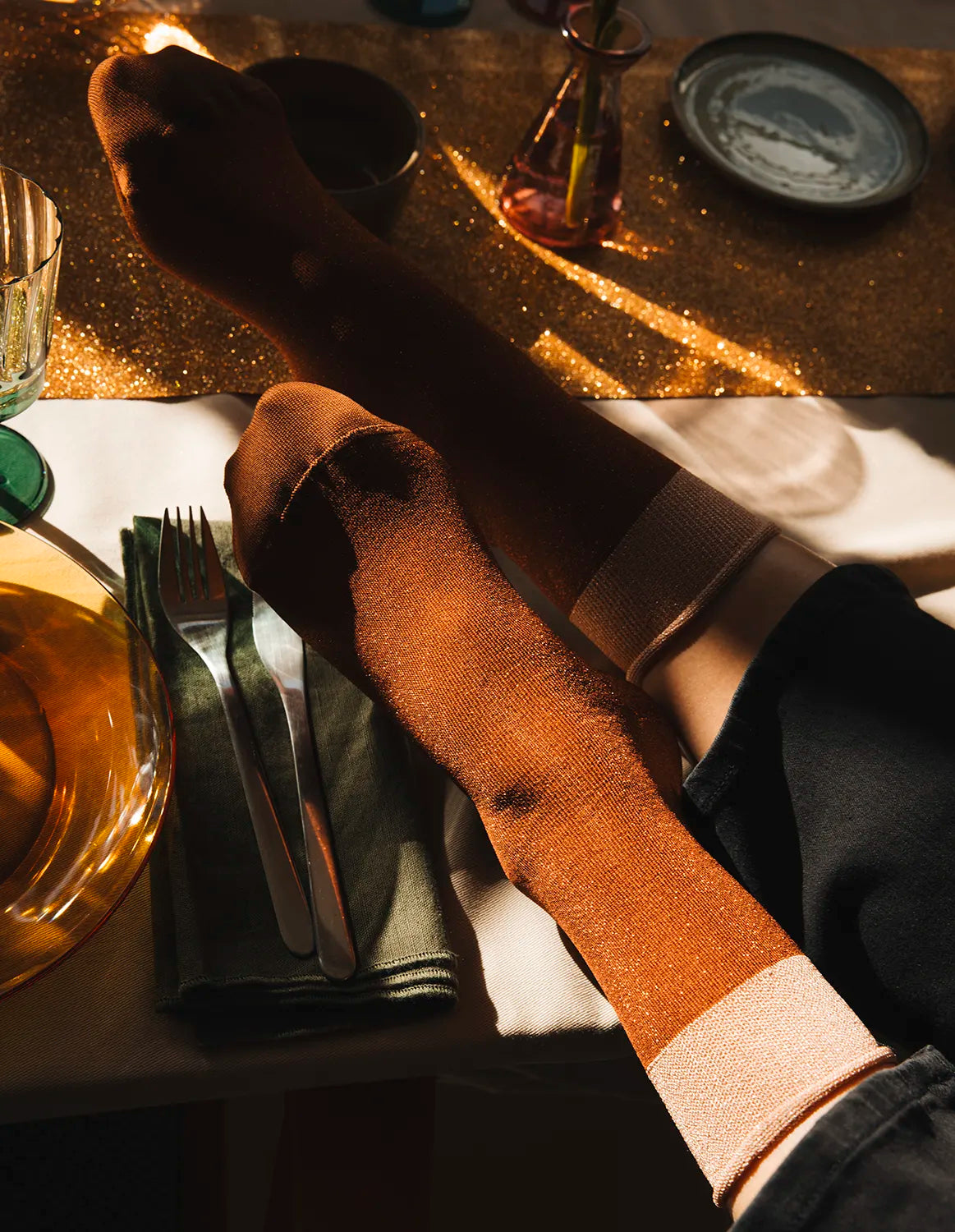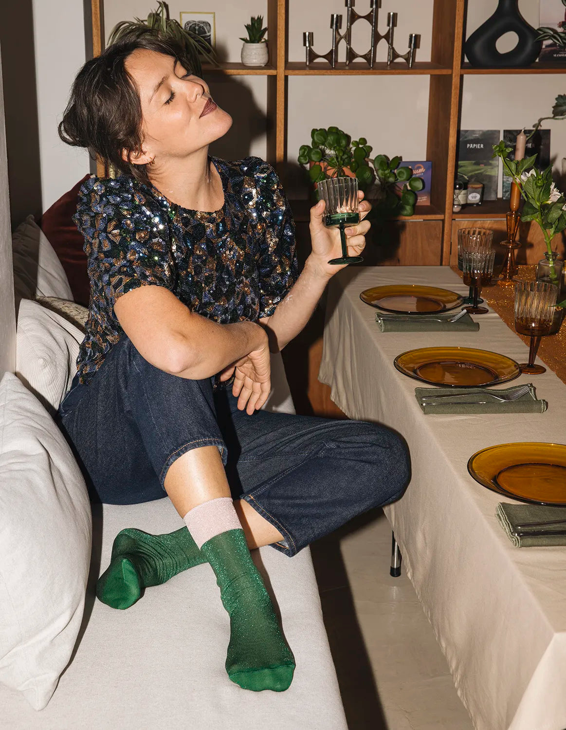 Découvrez notre nouvelle collection capsule de chaussettes pailletées pour femme : des modèles scintillants, festifs et élégants, parfaits pour illuminer vos looks de soirée et briller pendant les fêtes de fin d’année !